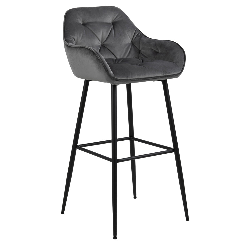 Hoker tapicerowany z podłokietnikami Agamos ciemnoszary welur na czarnej podstawie