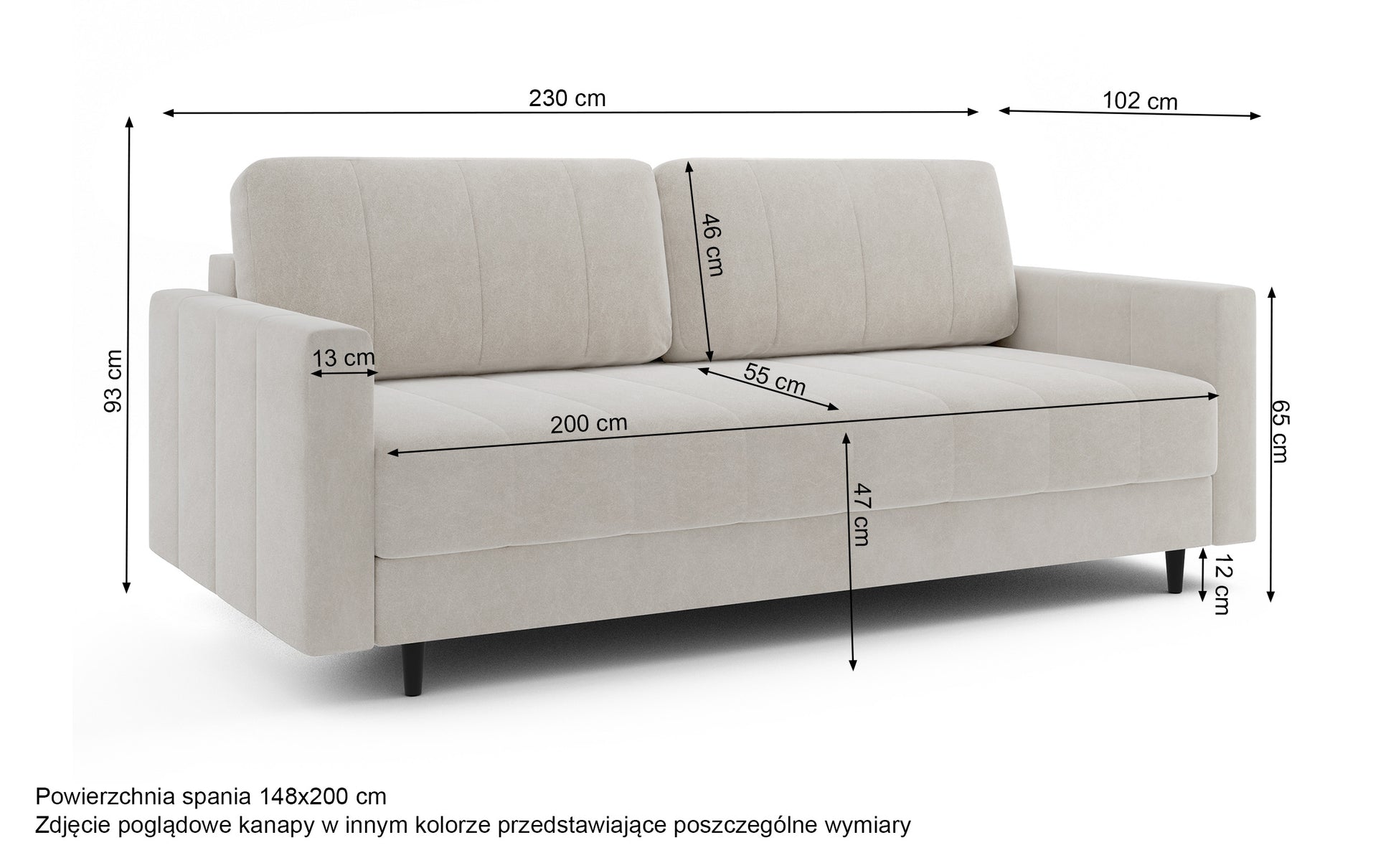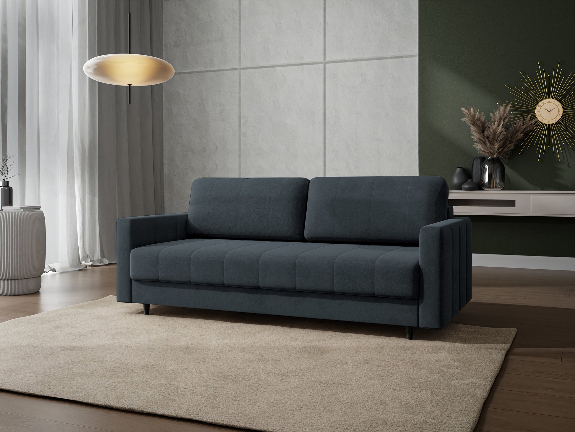 Kanapa rozkładana trzyosobowa Ambon z pojemnikiem granatowa welur łatwoczyszczący