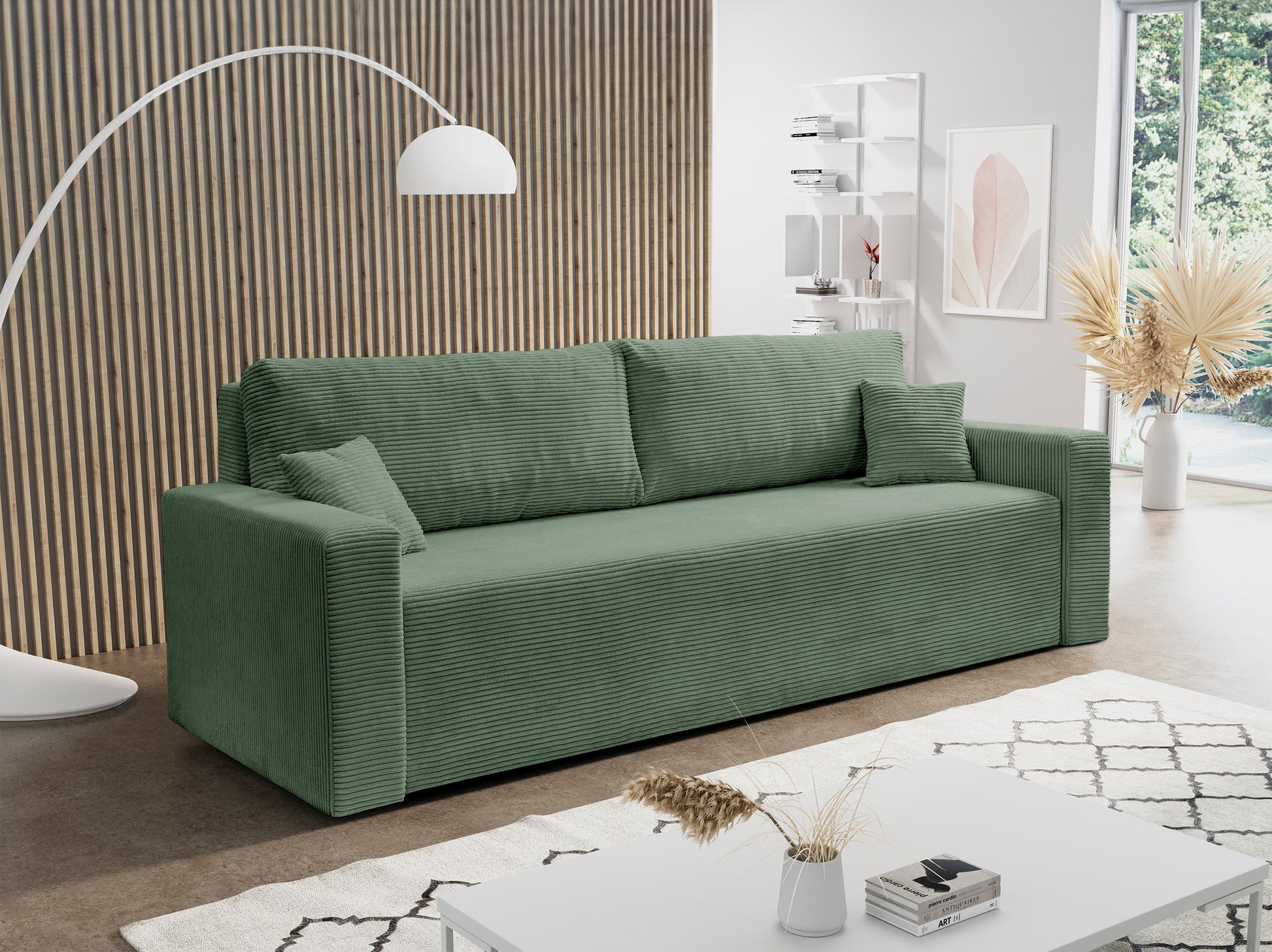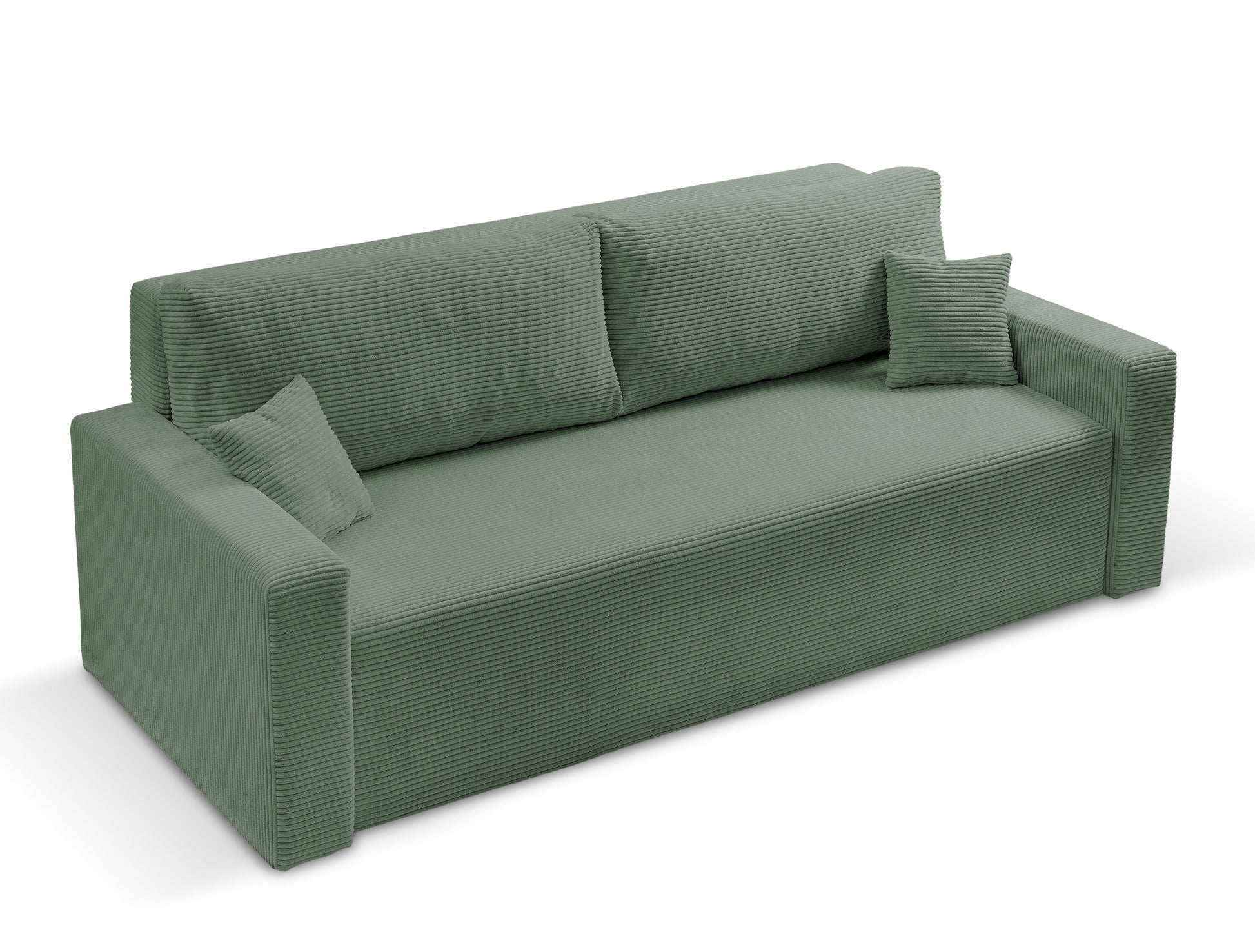 Kanapa rozkładana trzyosobowa Peroso szałwiowa z pojemnikiem sztruks