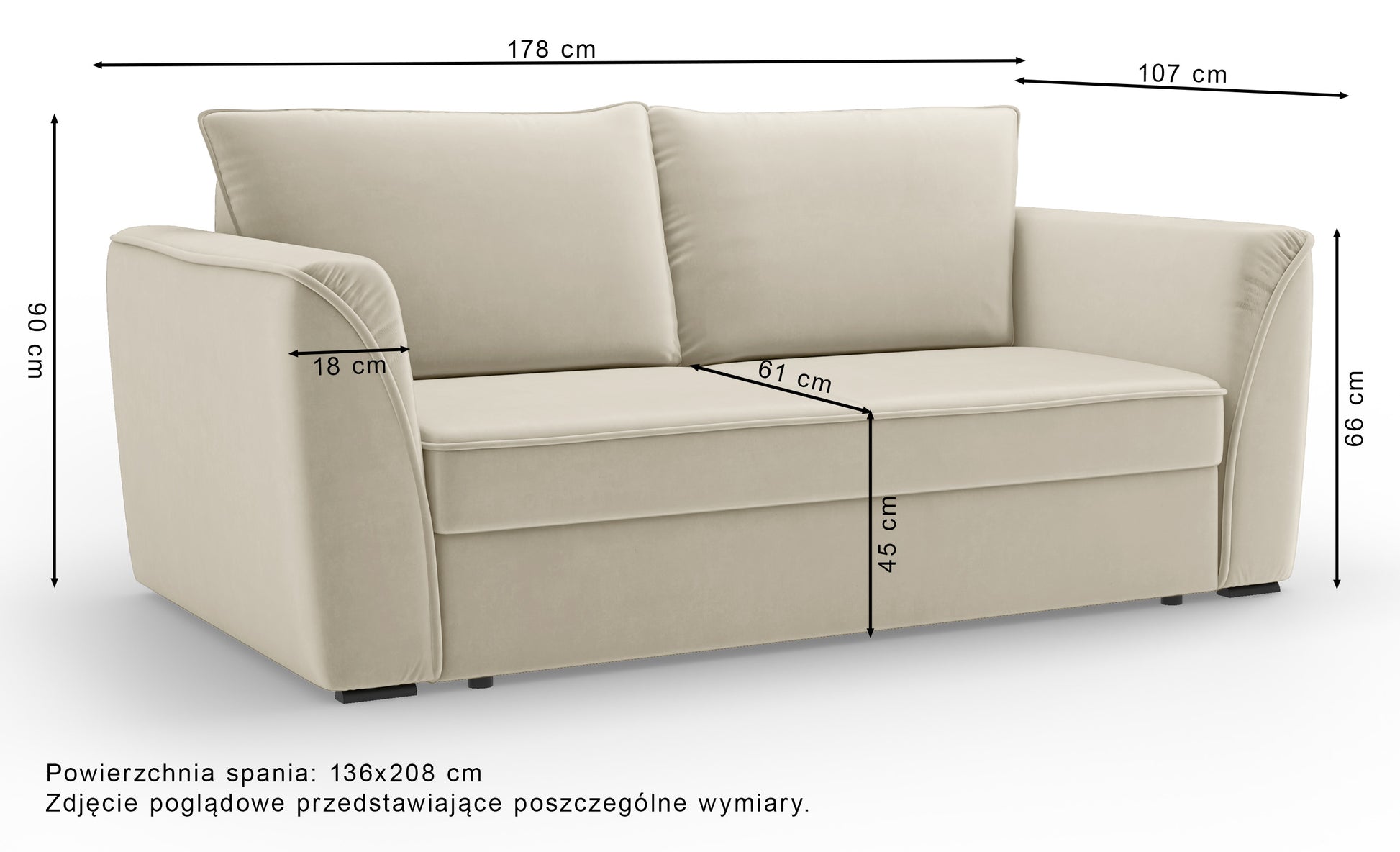 Dzięki funkcji spania typu puma rozkładanie kanapy staje się szybkie i intuicyjne. W mgnieniu oka zamienisz ją w wygodne łóżko, co sprawia, że jest doskonałym wyborem zarówno do codziennego relaksu, jak i jako miejsce do spania dla gości. Siedzisko, wykonane z wysokiej jakości pianki poliuretanowej i sprężyn falistych, gwarantuje nie tylko wygodne siedzenie, ale także idealne podparcie podczas snu. Zdejmowane poduchy oparciowe dają Ci możliwość dopasowania kanapy do Twoich potrzeb – w każdej chwili możesz je łatwo zdjąć, tworząc więcej miejsca do relaksu. Co więcej, tapicerowany tył kanapy pozwala na pełną swobodę aranżacyjną. Możesz ustawić ją w dowolnym miejscu w salonie, nie ograniczając się do ściany, co daje większe możliwości w kreowaniu przestrzeni. Kanapa Viki to coś więcej niż tylko mebel – to wszechstronne rozwiązanie, które zapewni Ci wygodę i funkcjonalność każdego dnia.