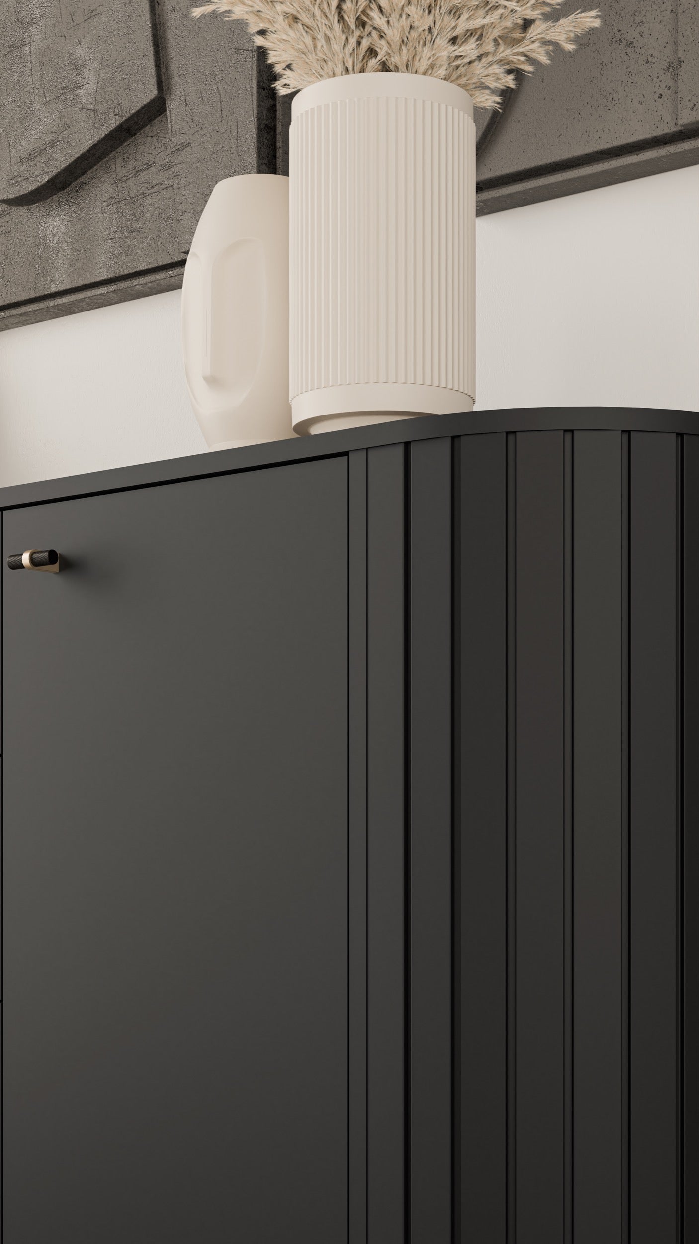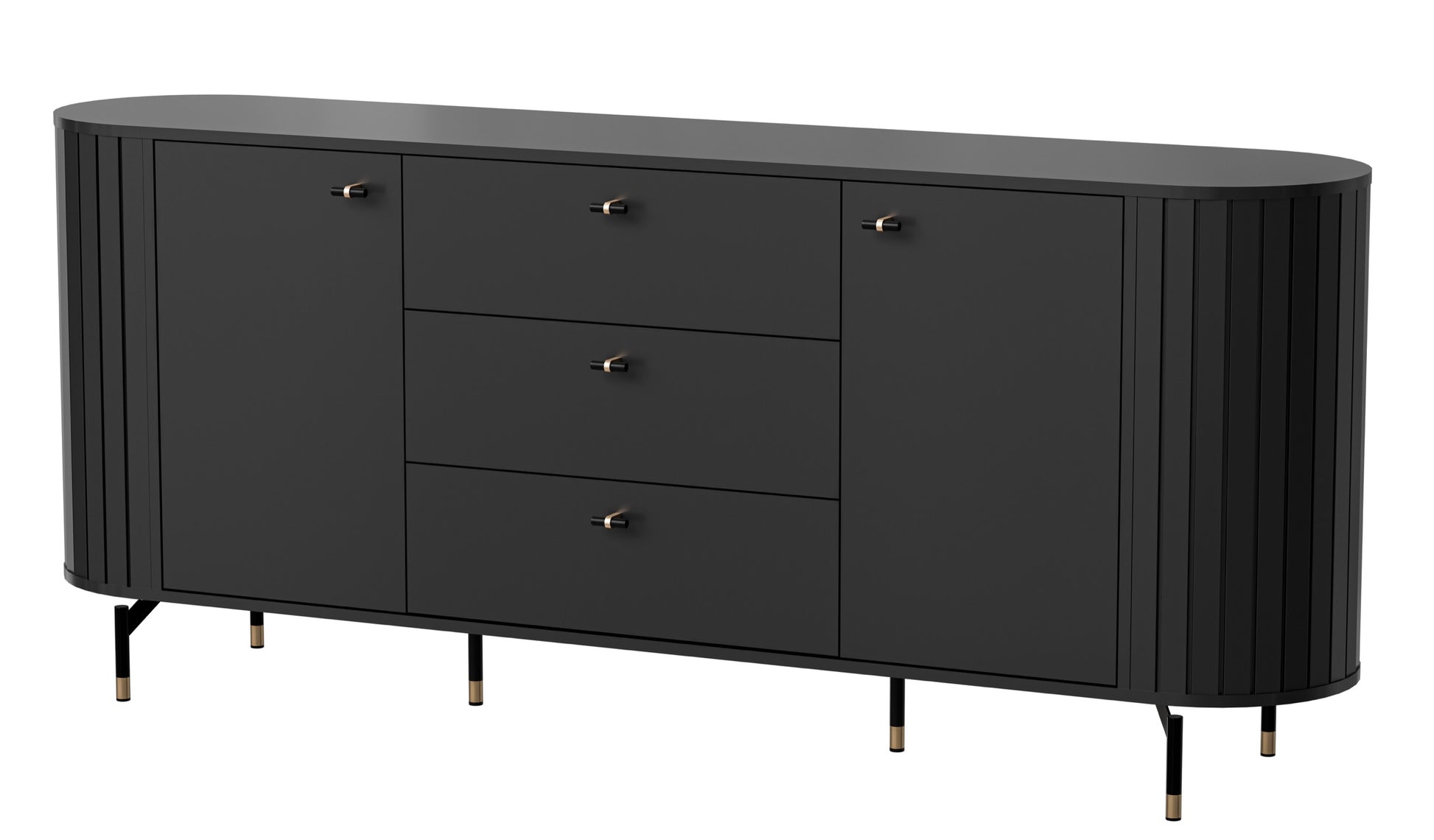Komoda dwudrzwiowa Zante z ryflami i trzema szufladami 190 cm czarna