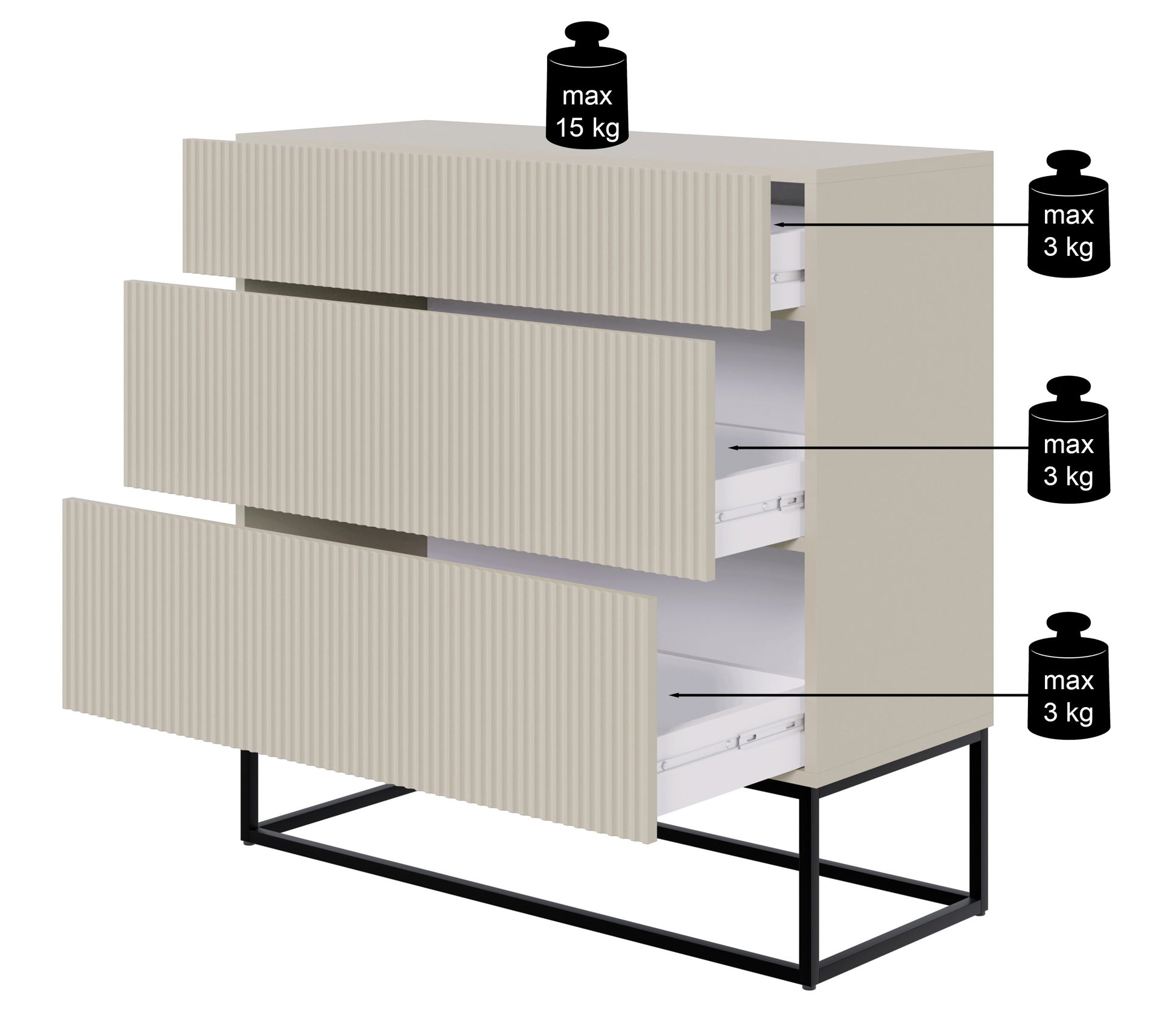 Zorganizuj nowoczesną przestrzeń w salonie lub sypialni z komodą Veldio 90 cm od Selsey Design. To rozwiązanie łączące estetykę soft glamour z najwyższą funkcjonalnością. Efektowne, ryflowane fronty w zestawieniu ze złotą podstawą nadadzą Twojemu wnętrzu wyrafinowanego charakteru, a trzy pojemne szuflady pozwolą sprytnie ukryć dokumenty, akcesoria czy tekstylia, gwarantując nienaganny ład na co dzień.