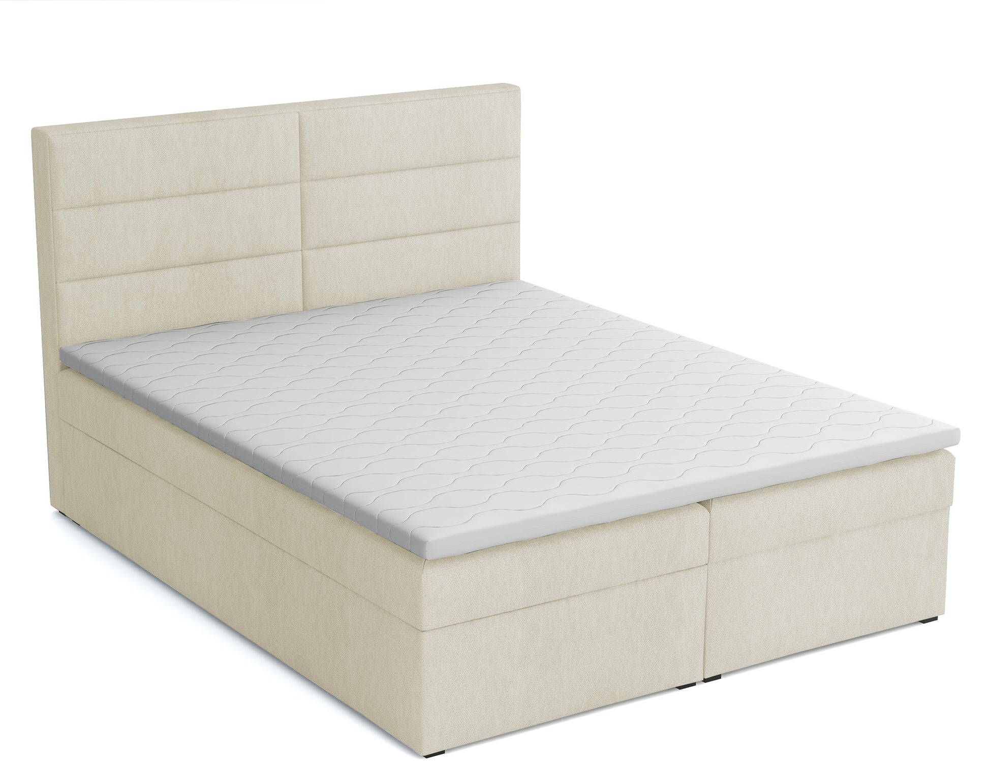 Łóżko kontynentalne 160x200 cm Valdamone z pojemnikami i topperem beżowe welur łatwoczyszczący
