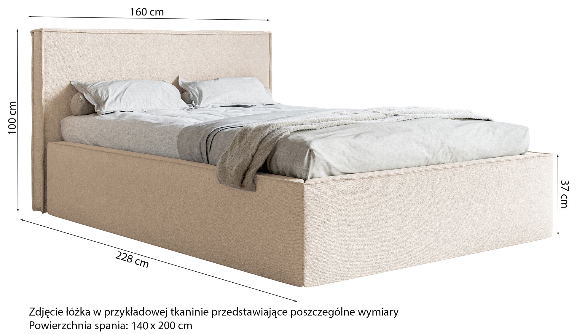 - powierzchnia spania - 140 x 200 cm,