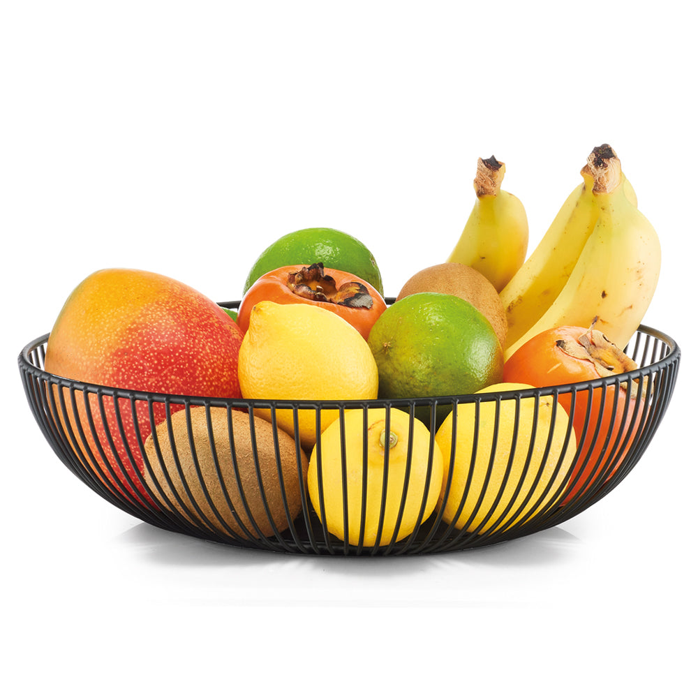 Miska na owoce Mevian znakomicie odnajdzie się w ekspozycji owoców w Twojej kuchni! Wykonana z metalu wyróżnia się wysoką trwałością i łatwością w czyszczeniu. Otwarta konstrukcja zapewnia stały przepływ powietrza do owoców, zapobiegając nieświeżości. Symetryczna konstrukcja wykonana z czarnego metalu sprawia, że Mevian idealnie wpasuje się w industrialny styl.