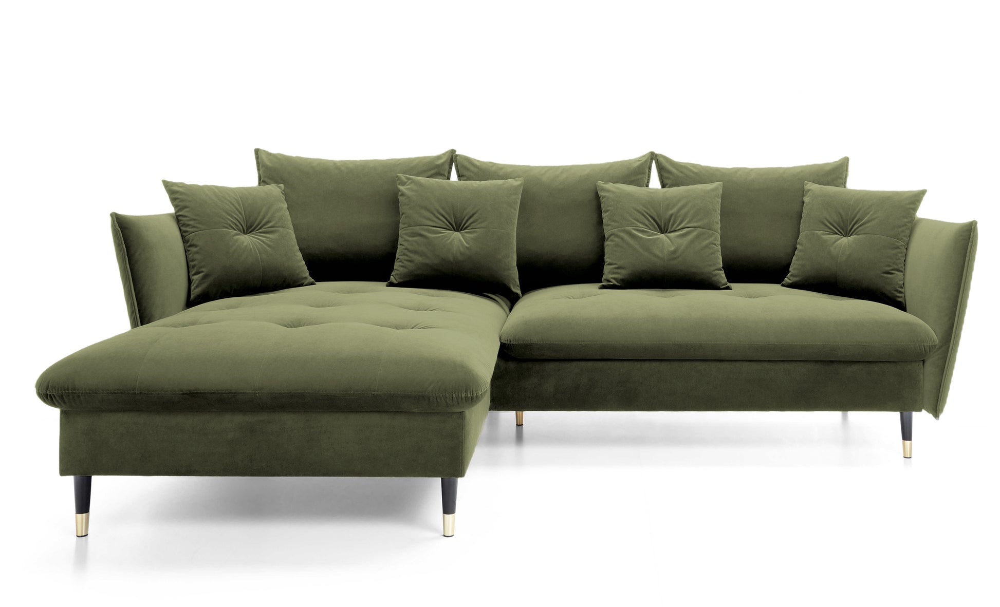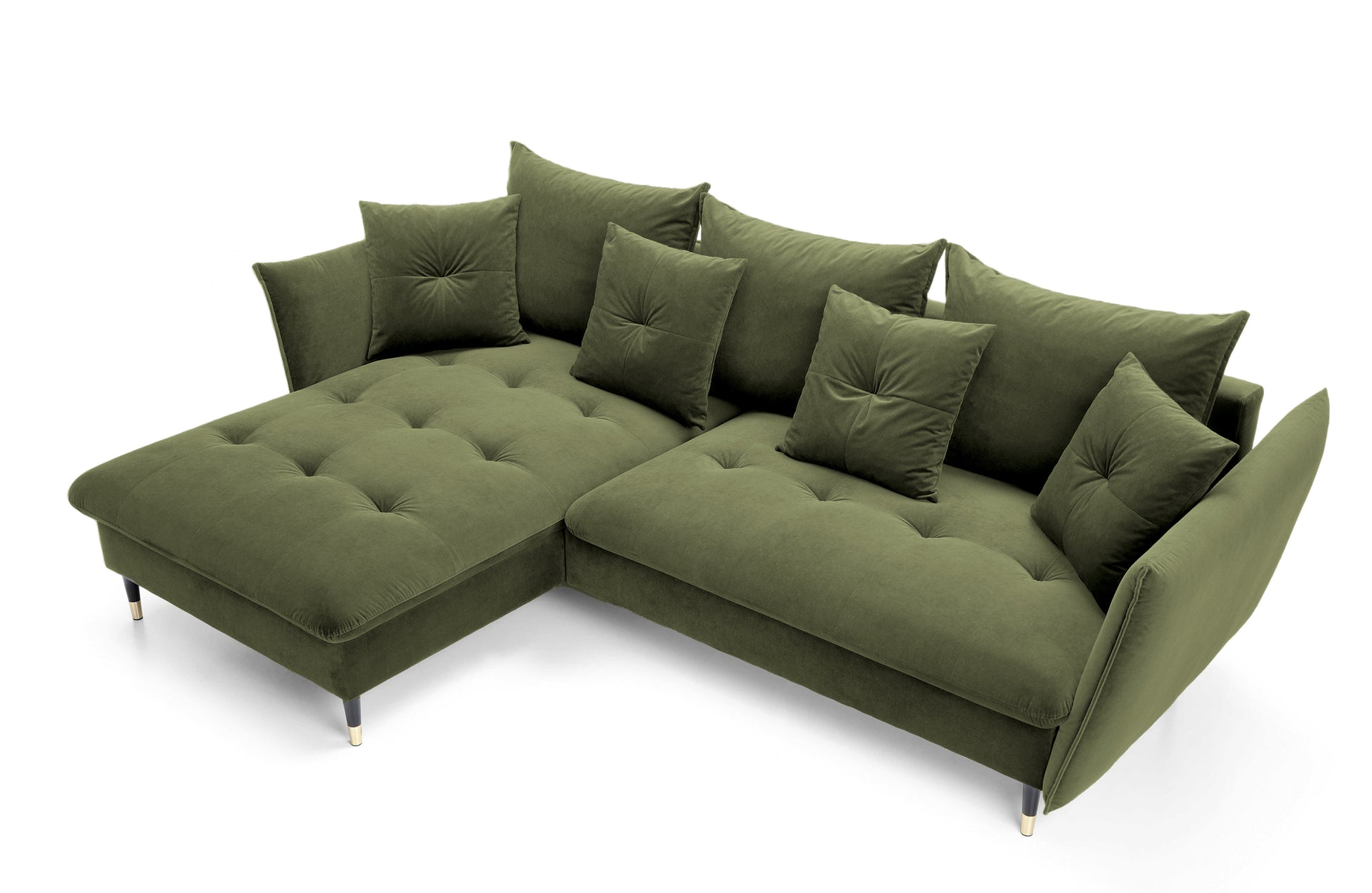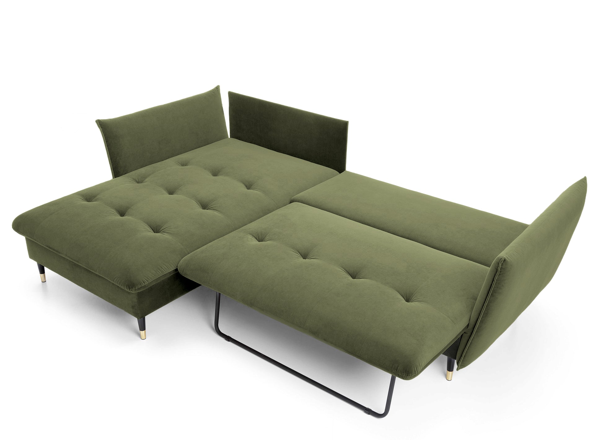 Narożnik z funkcją spania Balze L-kształtny z pojemnikiem oliwkowy velvet hydrofobowy lewostronny