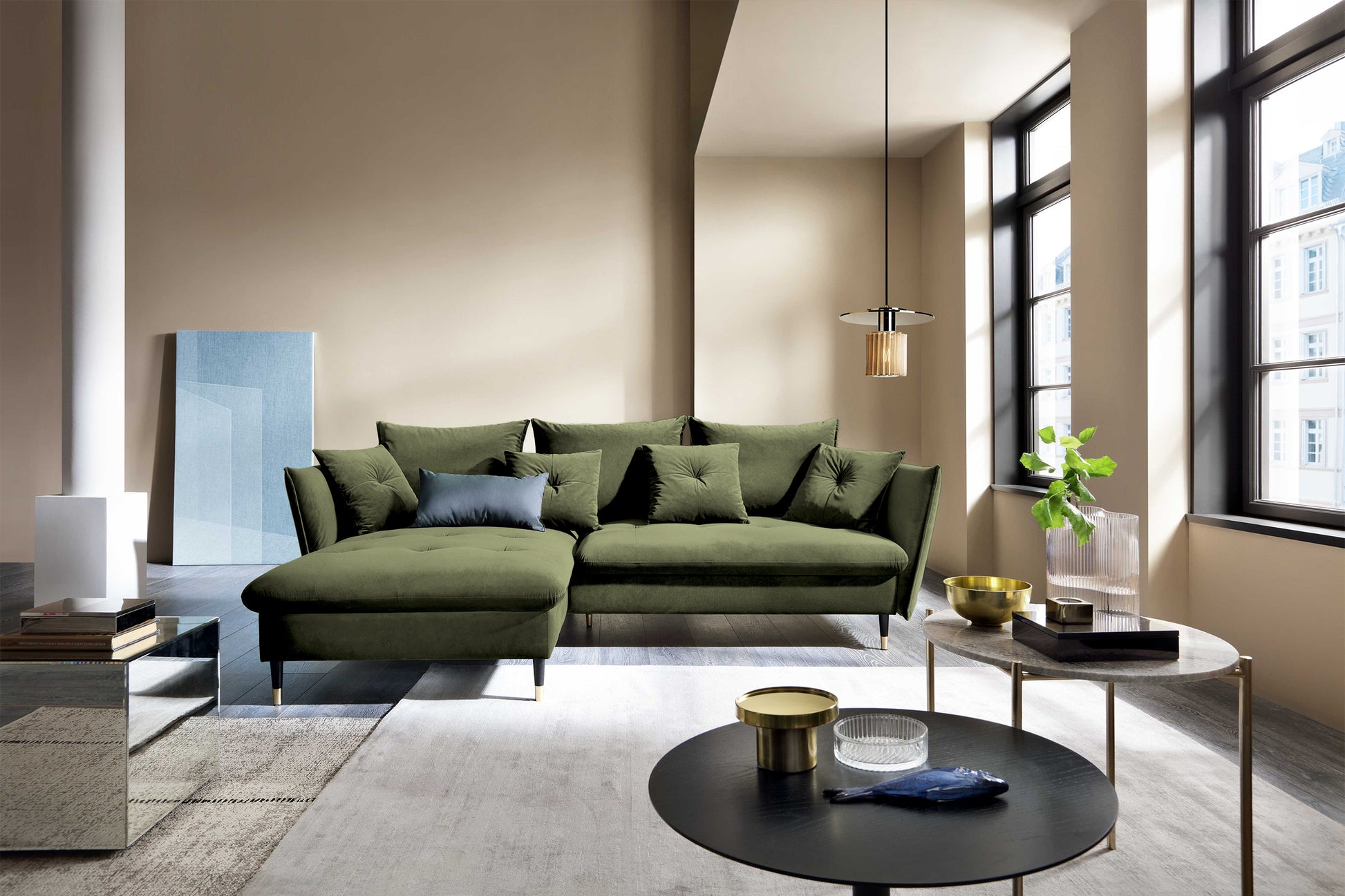 - mebel obito tkaniną Matt Velvet 38 w kolorze oliwkowym