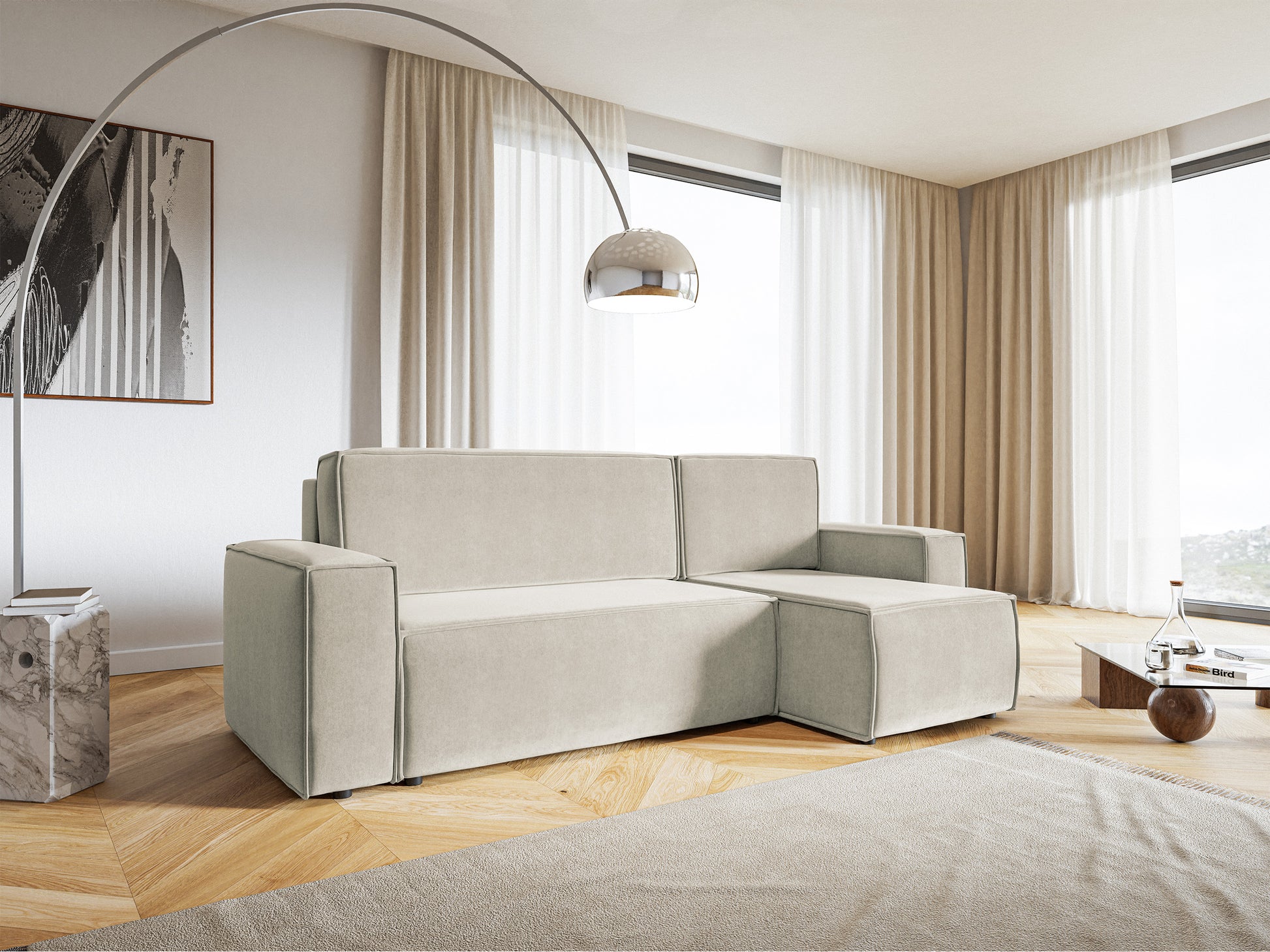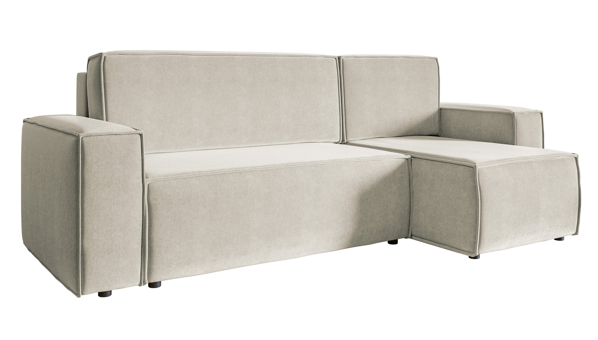 Narożnik z funkcją spania Copertino L-kształtny z pojemnikiem uniwersalny jasnobeżowy welur hydrofobowy