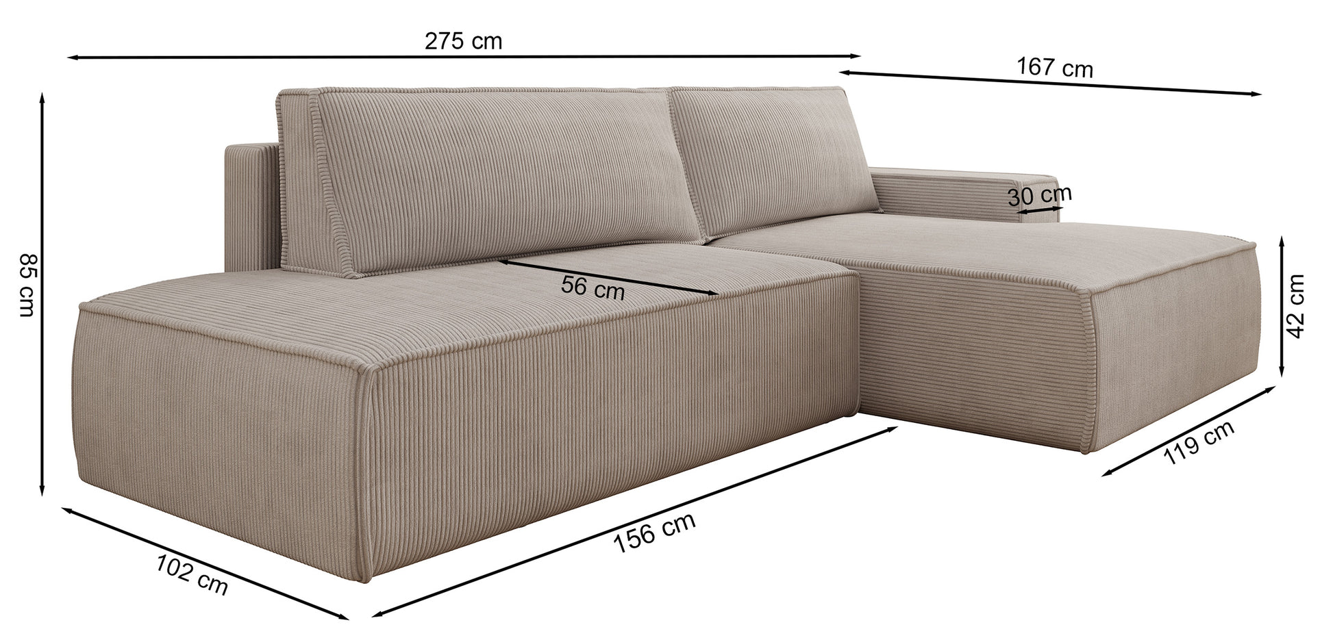 Minimalistyczny design w subtelnej, eleganckiej formie świetnie wpisuje się zarówno w klasyczne, jak i nowoczesne aranżacje. Dzięki funkcji spania typu smart z automatem wspomagającym otwieranie, rozkładanie narożnika jest niezwykle łatwe i szybkie – wystarczy chwila, by zamienić go w komfortowe łóżko dla Ciebie lub Twoich gości. Praktyczny pojemnik na pościel pozwala na wygodne przechowywanie kołder i poduszek, oszczędzając cenne miejsce w szafach. Zdejmowane poduchy oparciowe umożliwiają dopasowanie przestrzeni do własnych potrzeb – możesz łatwo zmienić głębokość siedziska i zadbać o maksymalny komfort. Tapicerowany tył sprawia, że Felicjo doskonale prezentuje się z każdej strony, dając pełną swobodę aranżacji – bez konieczności przysuwania go do ściany. Postaw na narożnik, który zachwyca wyglądem i oferuje komfort, na który zasługujesz każdego dnia.