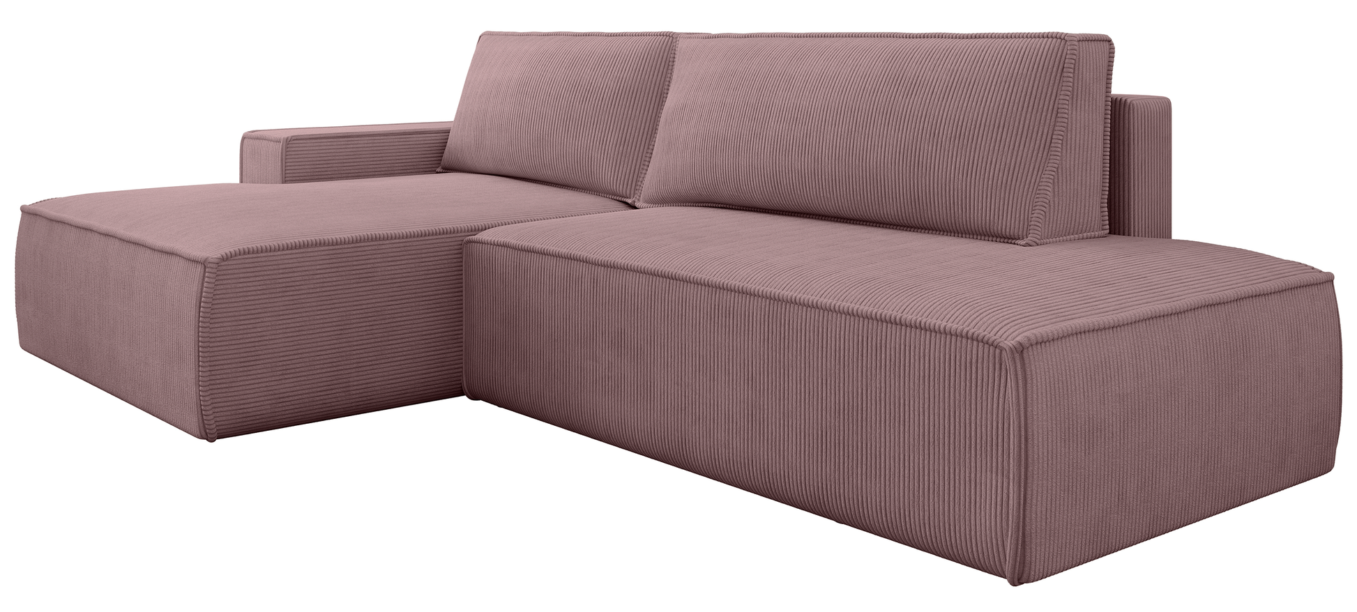 Narożnik z funkcją spania Felicjo L-kształtny lewostronny z pojemnikiem liliowy sztruks