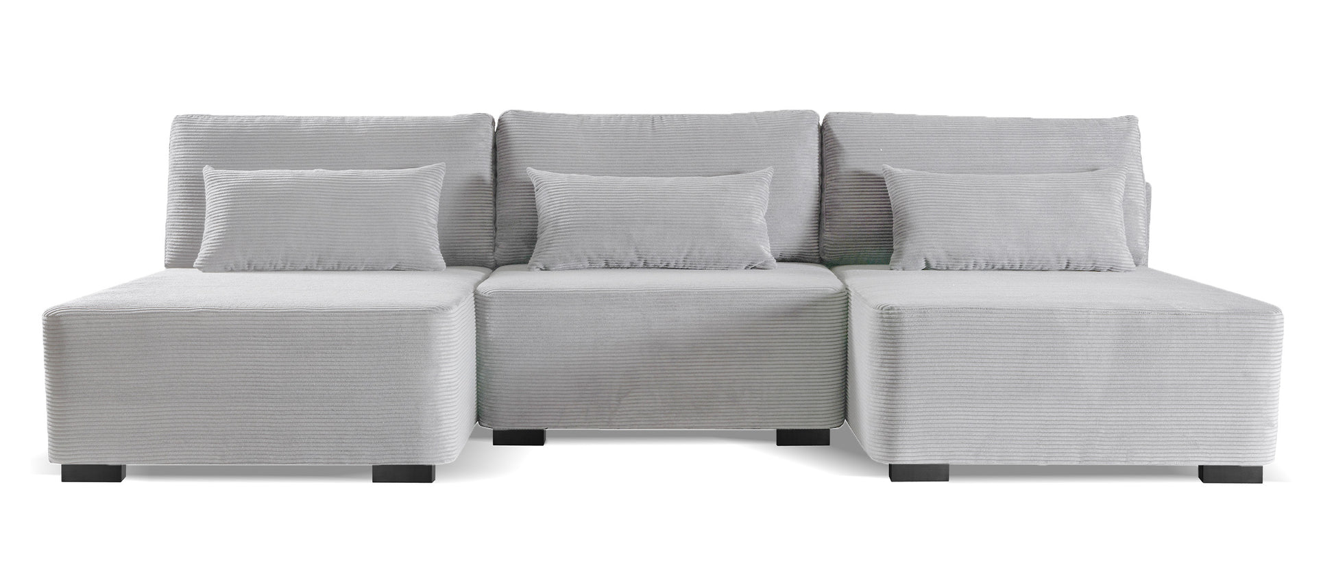 Moduliano to stylowy narożnik w kształcie litery U, składający się z trzech segmentów. Jego prosta budowa i obłe zarysy idealnie wpasują się do większości wnętrz, a dzięki możliwości rozdzielenia segmentów będziesz miał możliwość dowolnego przesuwania pojedynczych elementów. Miękkie, ozdobne poduszki pozwolą Ci przyjemnie rozłożyć się na narożniku, dzięki czemu zapomnisz o stresującym dniu. Siedzenie, jak i oparcie wypełnione są pianką poliuretanową oraz sprężynami bonellowymi sprawiając, że mebel ten jest niezwykle wygodny. Całości Moduliano dopełnia wyjątkowa sztruksowa tkanina, która nadaje owej prostej bryle charakteru. Dodatkowo narożnik z łatwością można rozłożyć w wygodne łóżko, na którym będziesz mógł przenocować znajomych lub rodzinę. Wszelkie tekstylia schowasz do pojemnika na pościel, który jest w standardzie narożnika. Szukasz czegoś mniejszego? Koniecznie sprawdź nasz narożnik L-kształtny z tej samej kolekcji!
