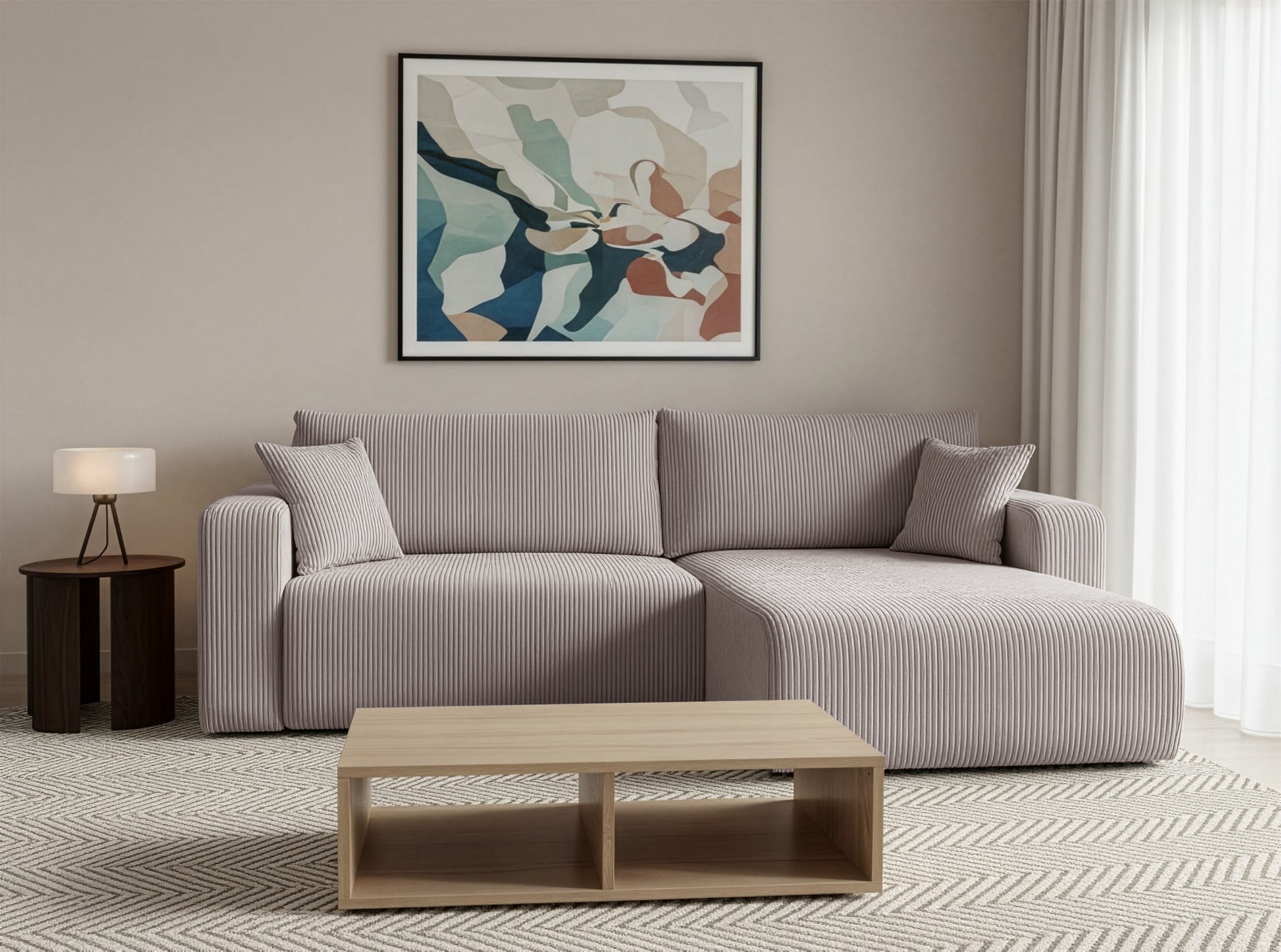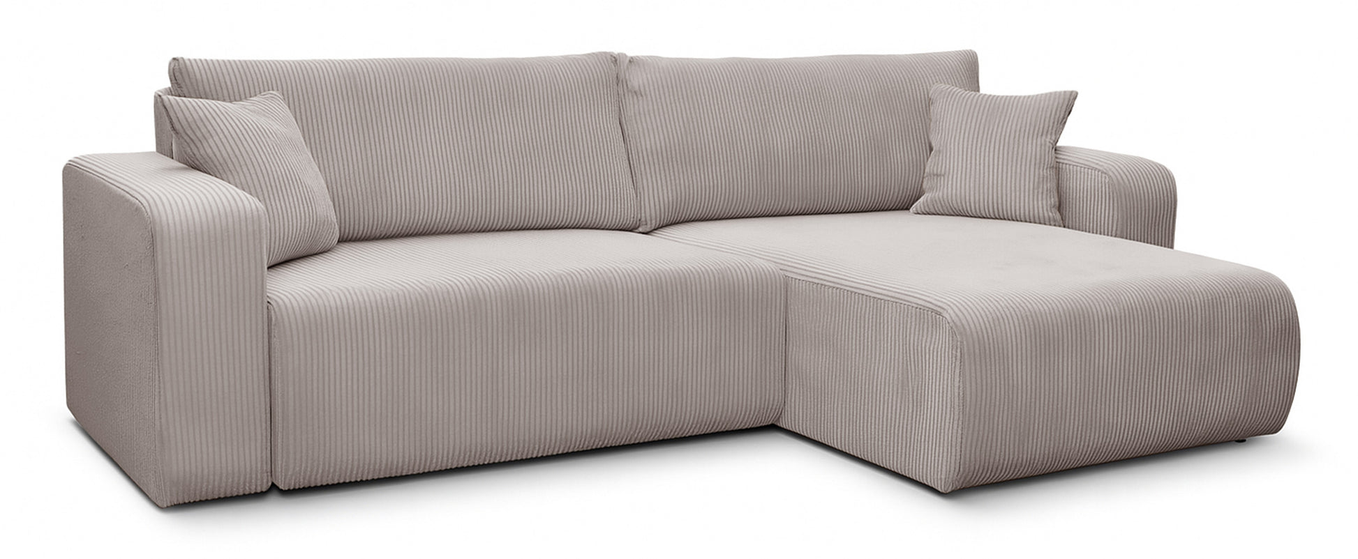 Narożnik z funkcją spania Nellio L-kształtny uniwersalny z pojemnikiem beżowy sztruks