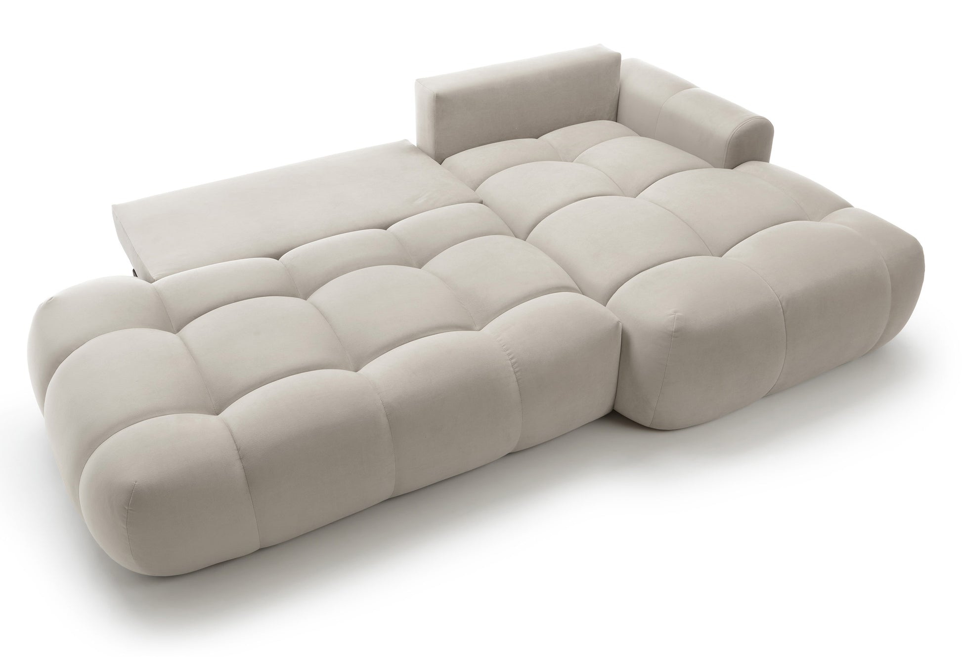Narożnik z funkcją spania Ombo L-kształtny z pojemnikiem szarobeżowy welur hydrofobowy prawostronny
