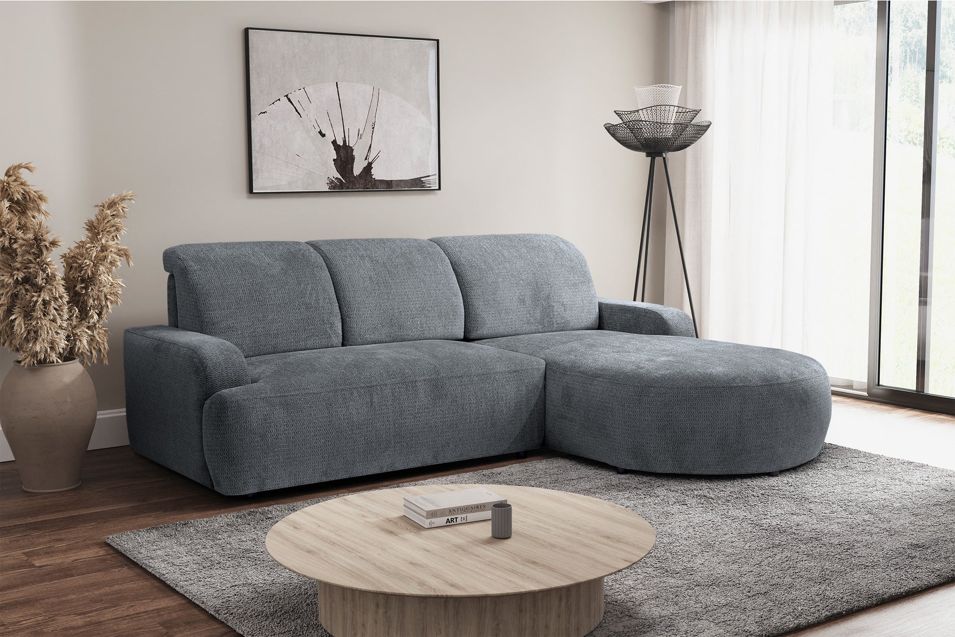 Narożnik z funkcją spania Parma L-kształtny prawostronny z pojemnikiem szary plecionka hydrofobowa