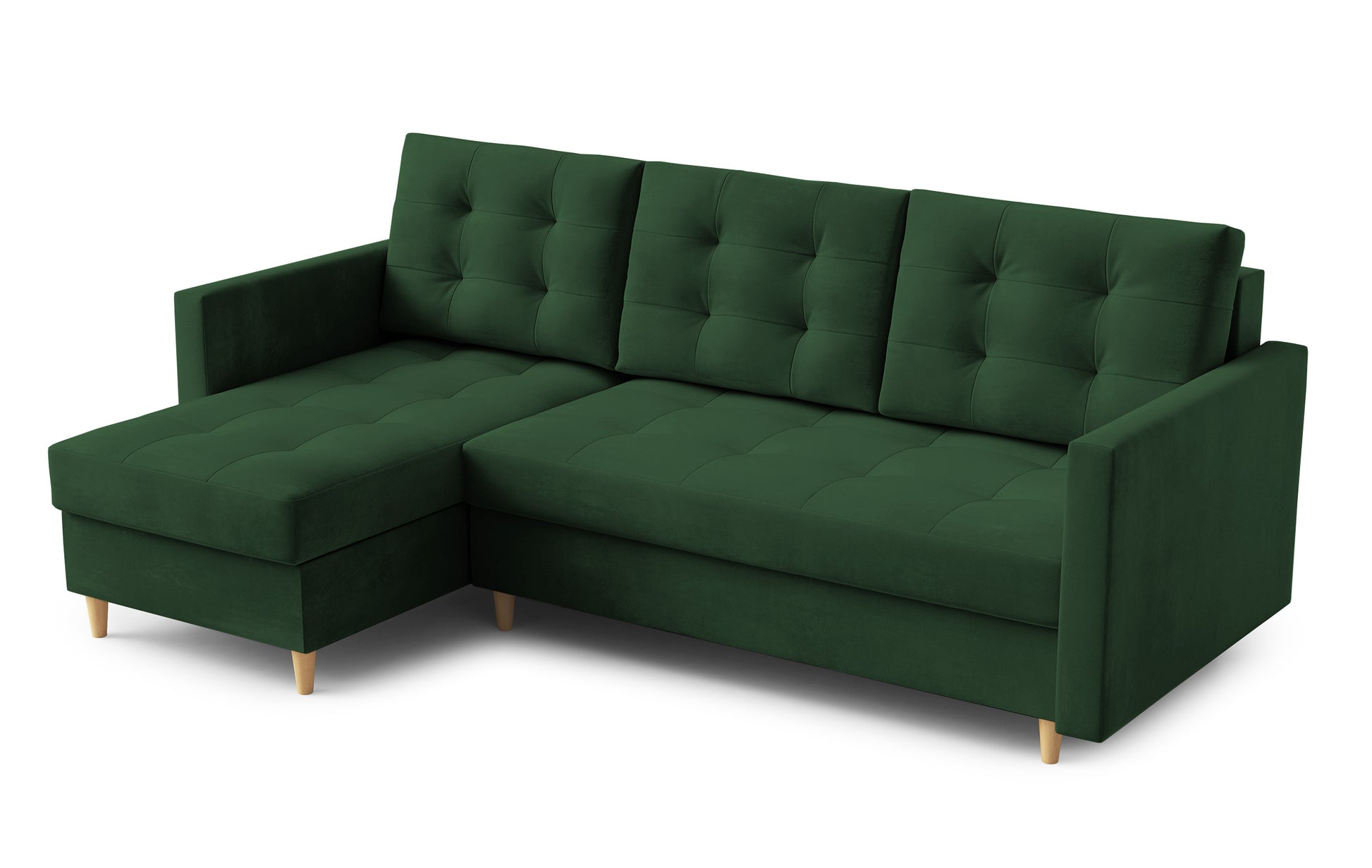 Narożnik z funkcją spania Plauton L-kształtny z pojemnikiem uniwersalny ciemnozielony welur