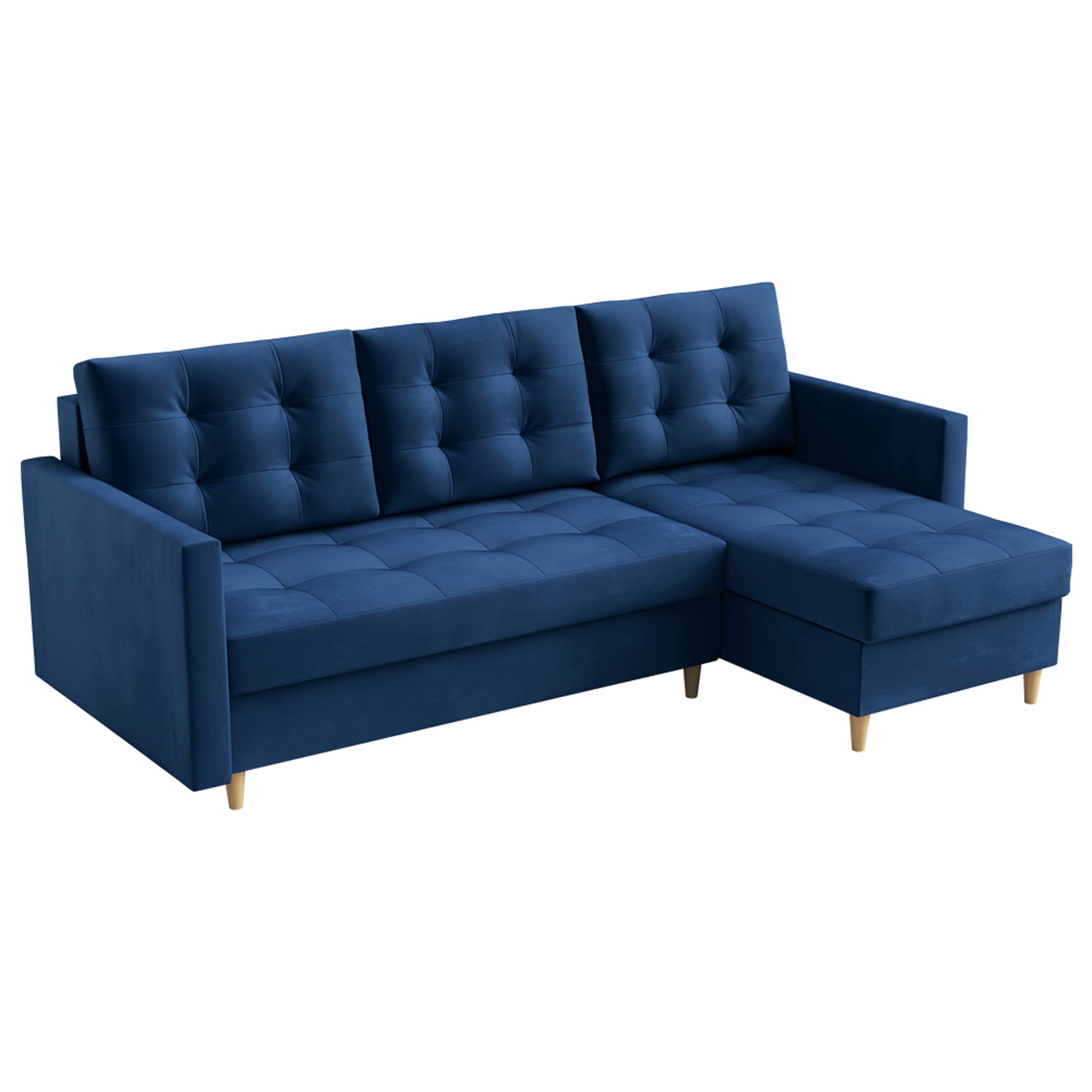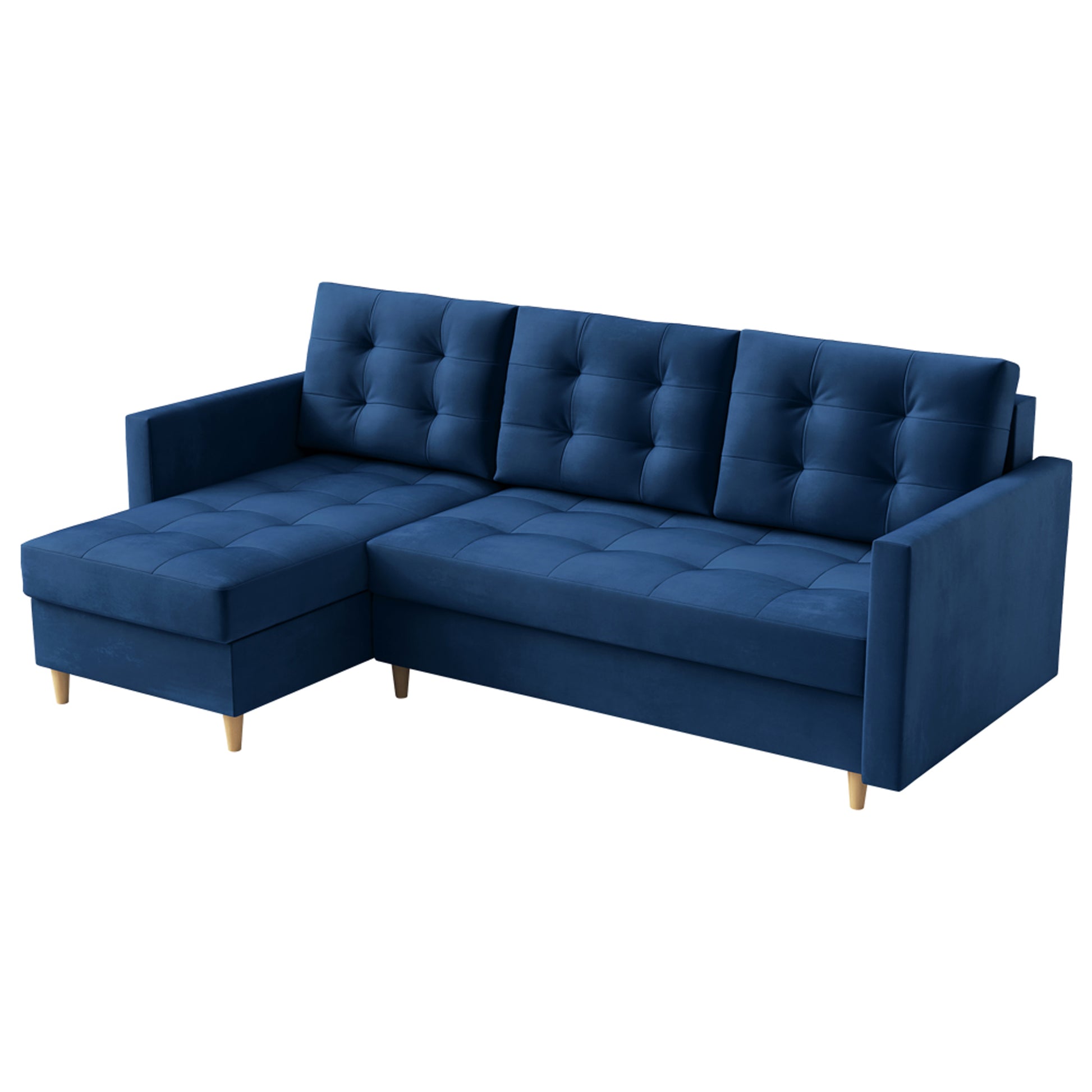 Narożnik z funkcją spania Plauton L-kształtny z pojemnikiem uniwersalny granatowy