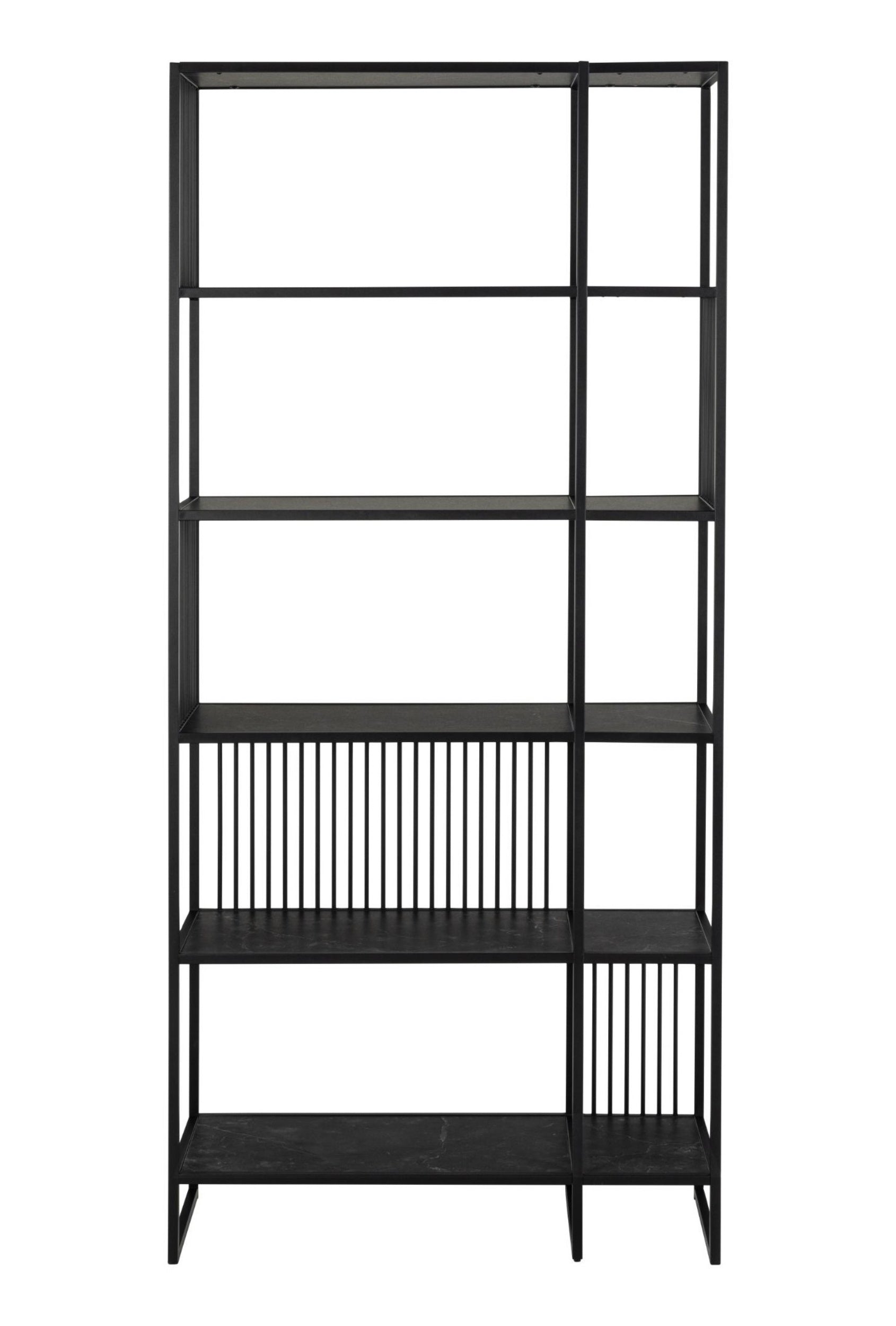 Regał o wysokości 185 cm charakteryzuje się solidną stalową konstrukcją, malowaną metodą proszkową w kolorze czarnym, co zapewnia jej trwałość i elegancki wygląd. Unikalnym elementem konstrukcyjnym są pionowe stalowe szczebelki, które ozdabiają regał, nadając mu lekkości i nowoczesnego charakteru. Blaty regału imitują czarny marmur, co dodaje całej kompozycji luksusowego wyglądu i elegancji. Regał składa się z trzech otwartych półek, oferując sporo miejsca do przechowywania książek, dekoracji, roślin czy innych przedmiotów codziennego użytku. Niski regał Velook jest idealnym rozwiązaniem do różnorodnych wnętrz - od salonu, przez sypialnię, po biuro. Jego przemyślany design sprawia, że doskonale sprawdzi się w nowoczesnych, minimalistycznych aranżacjach, a także w loftowych i industrialnych przestrzeniach. Dzięki solidnej konstrukcji i eleganckiemu wykończeniu, regał Velook jest nie tylko praktycznym meblem do przechowywania, ale także stylowym dodatkiem, który wzbogaci każde wnętrze.